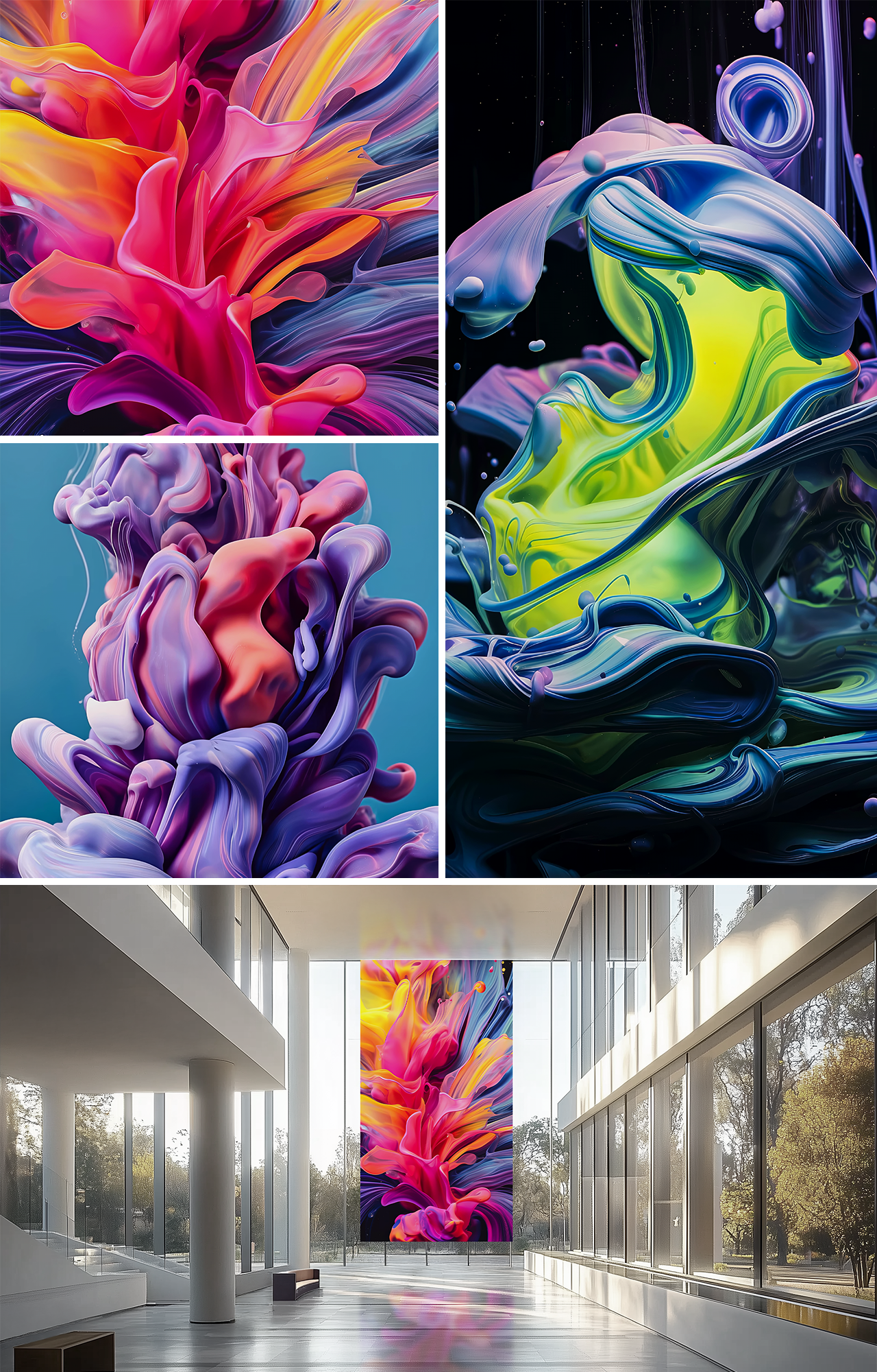 This LED Art exclusive abstract video series transforms organic liquid ink paintings into colorful, fluid motion through photography and generative experimentation. Swirling galaxies of deep purples, rich blues, glowing golds, and many more vibrant hues collide like liquid nebulae, revealing drifting stardust textures. Each piece becomes a living choreography of light and movement, celebrating emotion, depth, and the poetry of fluid transformation.