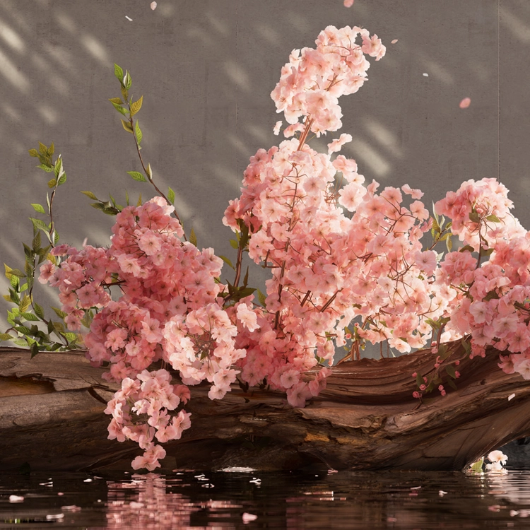 A gentle breeze gently sways the cherry blossoms, and the petals dance freely in the wind, filling the space. The dance of petals announces the arrival of spring and seems to awaken all life. This graceful dance conveys a bright and hopeful feeling.