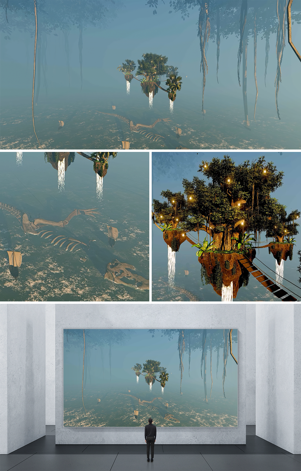 This piece presents itself as a visual narrative, delving into the mysteries of hidden worlds that exist within dimensions beyond our own. These realms serve as meeting points for multiple layers of reality, intertwining and connecting in mesmerising ways. As the narrative unfolds, it showcases the soul of wanderer traversing diverse planes of existence, seeking connection and alignment. It beautifully captures the essence of adventure and self-discovery, revealing the pursuit of love, passion, and purpose. Within this strange world, lost within the depths of nowhere, readers are invited to explore a new universe and observe the complexities of small ecosystems.