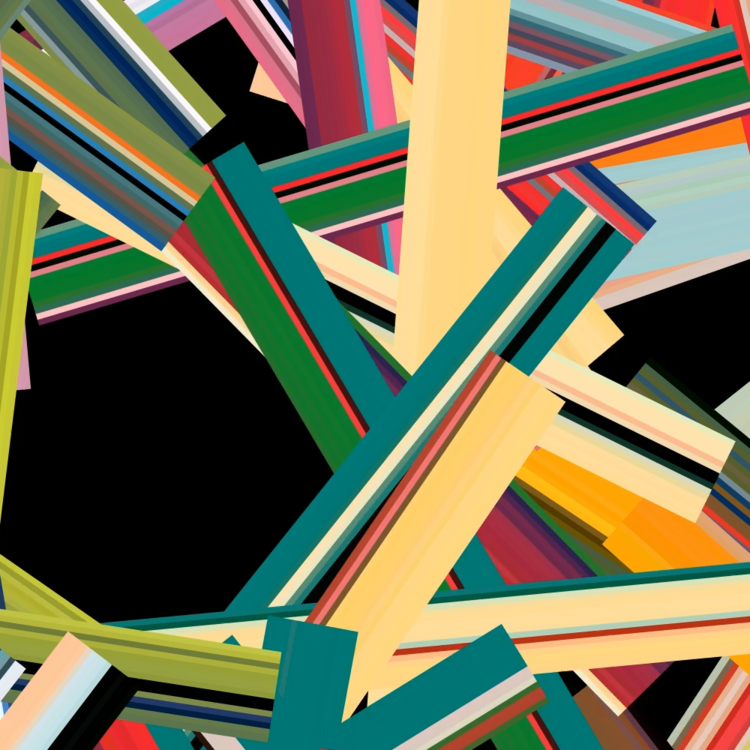 Colored Bars in Motion is a generative composition in which multi-layered bars—each built from vibrant color stripes—rotate endlessly, each along a randomized direction. As they shift and overlap, the bars create a dynamic sense of depth and structure, forming a spatial rhythm that feels both dense and fluid. Despite the complexity of movement, the bars never collide; instead, they coexist in a choreography of continuous motion. The result is a visual field of perpetual rotation—an interplay of color, form, and space that evokes both tension and harmony.