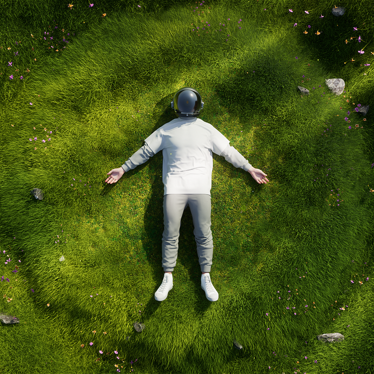 This piece is about feeling deeply connected to nature. A person lies in a wide, green field, looking up at the sky, as soft waves of energy flow out from them, gently shaping the ground around. It’s a calm, dreamy moment where the line between the person and the land slowly fades away. Inspired by slowing down, breathing deeply, and letting the rhythm of the world blend with your own, it’s about the quiet joy of daydreaming and simply existing as part of the world around you.