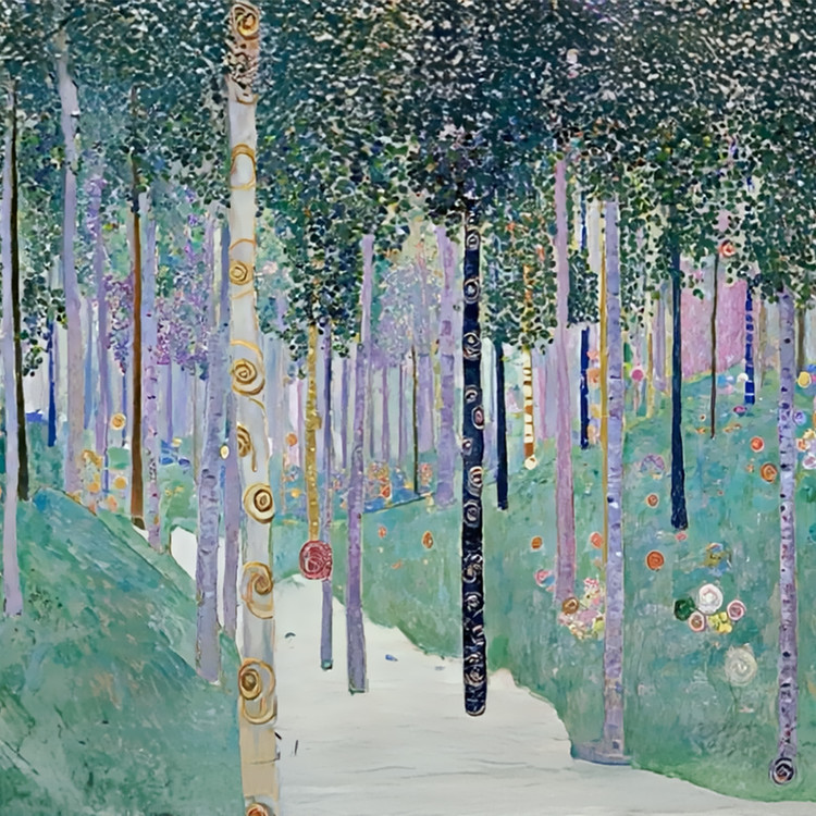 This work is an homage to Gustav Klimt’s masterpiece Birch Forest, and an attempt to add a new dimension of time and life to his flat, decorative world. The vertical tree trunks and pointillist leaves create a subtle rhythm, as if each moves at its own pace in a gentle breeze. It evokes the impression of a forest breathing quietly— inviting the viewer into a state of deep meditation and contemplation.