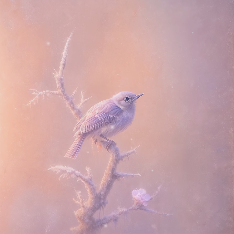 *“Hwajodo”* — paintings of flowers and birds — has long symbolized harmony and the beauty of life in Korean art, inspiring countless artists from the Goryeo to Joseon dynasties. This work reinterprets Jeong Seon’s *Hwajodo* through **d’strict**’s distinctive sensibility and immersive style. Amid the soft snowfall of early spring, a sparrow flutters toward a blooming plum branch, as if greeting the season with joy. The delicate balance between the flower and the bird embodies timeless serenity, vitality, and harmony.