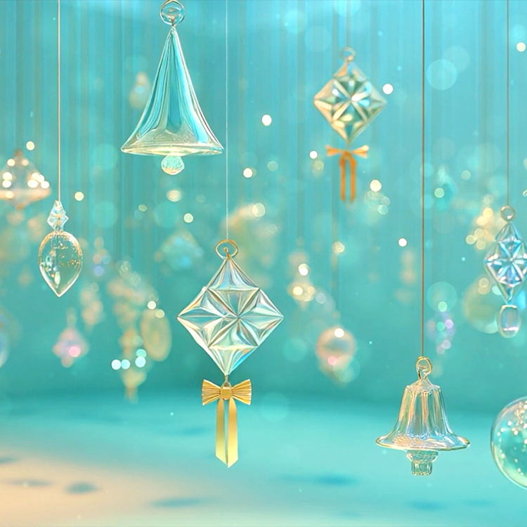 Glass-clear objects float slowly in the air. They rotate, illuminating one another, and their reflected light quietly stains the space. The winter sunlight and the white breath of Christmas blend like a single respiration, creating a tranquil rhythm. Through the stillness and rotation of the glass mobiles, Winter Mobile creates a gentle visual resonance. It is a Christmas landscape that visualizes the very circulation of light seeping through the winter's silence.