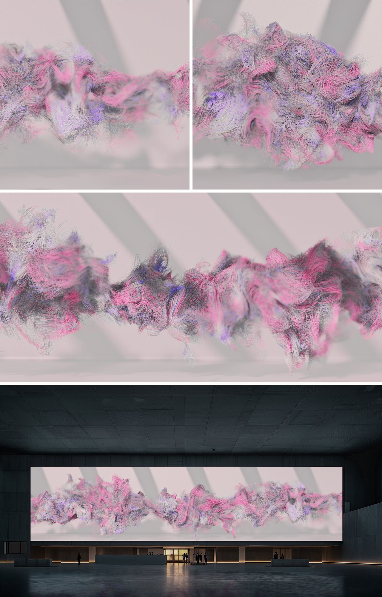Countless delicate strands intertwine, repeating cycles of creation and dissolution. Through the flow of light, each movement carries the stillness and inevitability of time, guiding viewers into a luminous rhythm where every moment connects.
