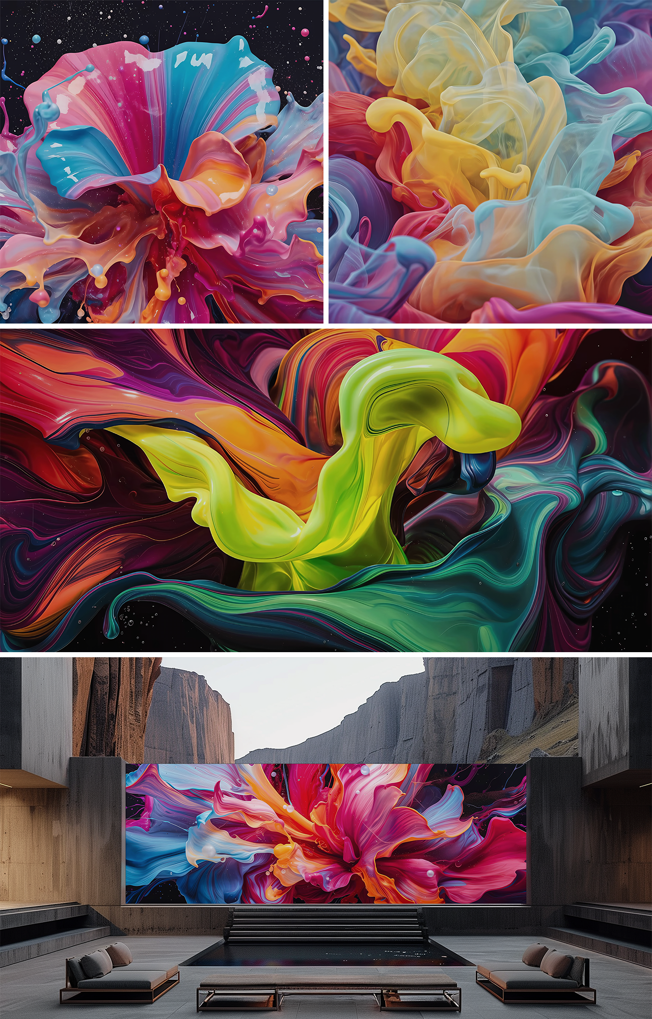This LED Art exclusive abstract video series transforms liquid ink paintings into animated works alive with bright, vibrant colors and drifting, cloud-ink movements. Through photography and generative experimentation, the pigments billow, swirl, and expand like luminous vapor, unfolding into fluid, dreamlike formations. Soft yet vibrant tones blend into cosmic, painterly textures, turning each piece into a living, breathing painting shaped by motion, light, and atmospheric color.