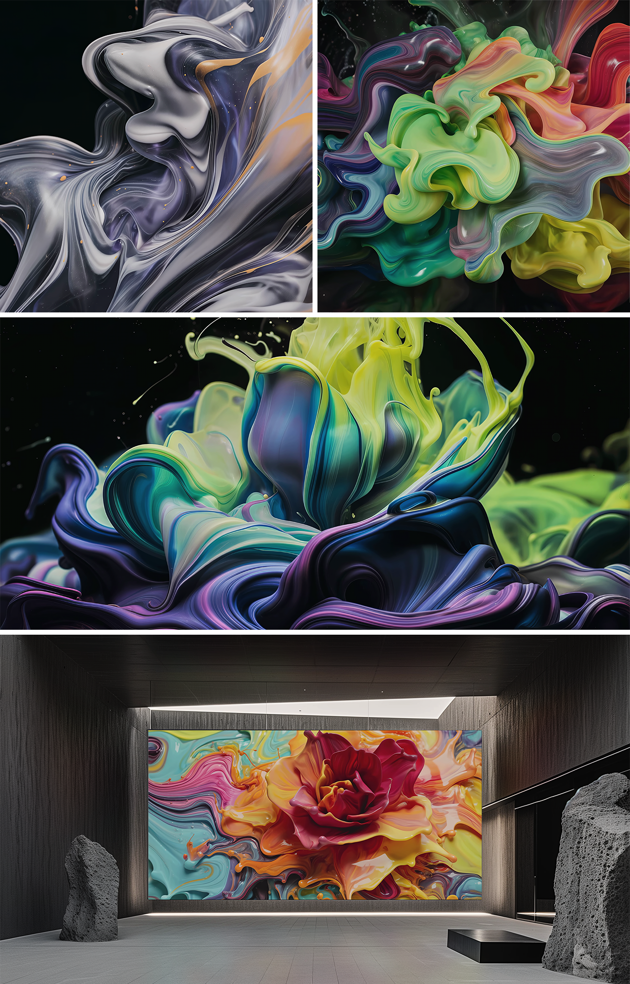 This LED Art exclusive abstract video series transforms liquid ink paintings into animated works alive with bright, vibrant colors and drifting, cloud-ink movements. Through photography and generative experimentation, the pigments billow, swirl, and expand like luminous vapor, unfolding into fluid, dreamlike formations. Soft yet vibrant tones blend into cosmic, painterly textures, turning each piece into a living, breathing painting shaped by motion, light, and atmospheric color.