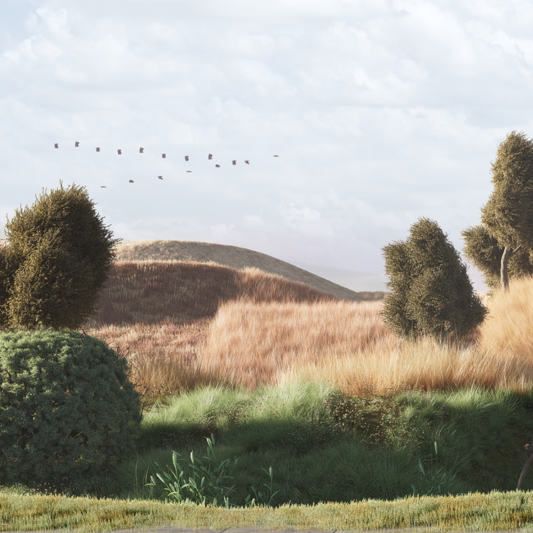 'Rotate Grounds'unfolds shifting landscapes within a fixed viewpoint, drawing on the theatrical technique of stage transitions. As if stage sets are being replaced, the surreal environment slowly transforms, offering viewers a subtle gap between staying and moving. Within this space of dissonance, the audience crosses the boundaries of time and space, encountering the moment when a once-familiar landscape is reconfigured into an unfamiliar artistic stage.