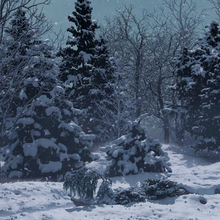 This artwork delicately captures the dual nature of winter, poetically depicting the moment when tranquility and turbulence intersect. Initially, it portrays a serene winter landscape in the forest, emphasizing a cold yet peaceful atmosphere. However, as time passes, winter’s gentle whispers gradually transform into a fierce whirlwind, revealing the raw power of nature within the storm. Yet, even such intensity is not eternal. As the storm subsides, a violet aurora spreads across the night sky, symbolizing the mystery of transformation and showcasing the fleeting harmony that nature creates. The piece encapsulates the beauty of change within winter’s breath, expressing the cyclical nature of transitions through profound and lyrical language.