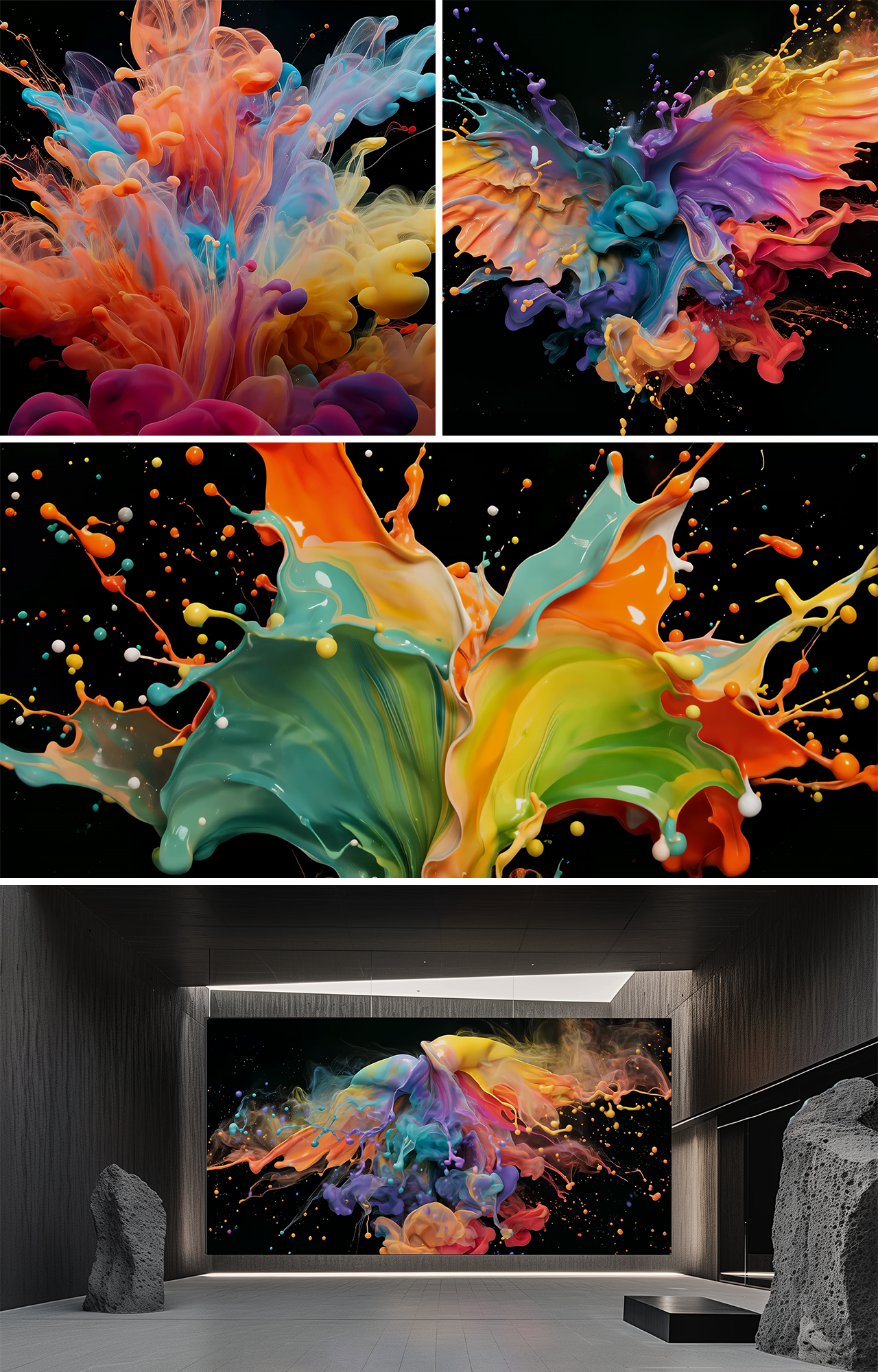 This LED Art exclusive abstract video series transforms organic liquid ink paintings into colorful, fluid motion through photography and generative experimentation. Swirling galaxies of deep purples, rich blues, glowing golds, and many more vibrant hues collide like liquid nebulae, revealing drifting stardust textures. Each piece becomes a living choreography of light and movement, celebrating emotion, depth, and the poetry of fluid transformation.