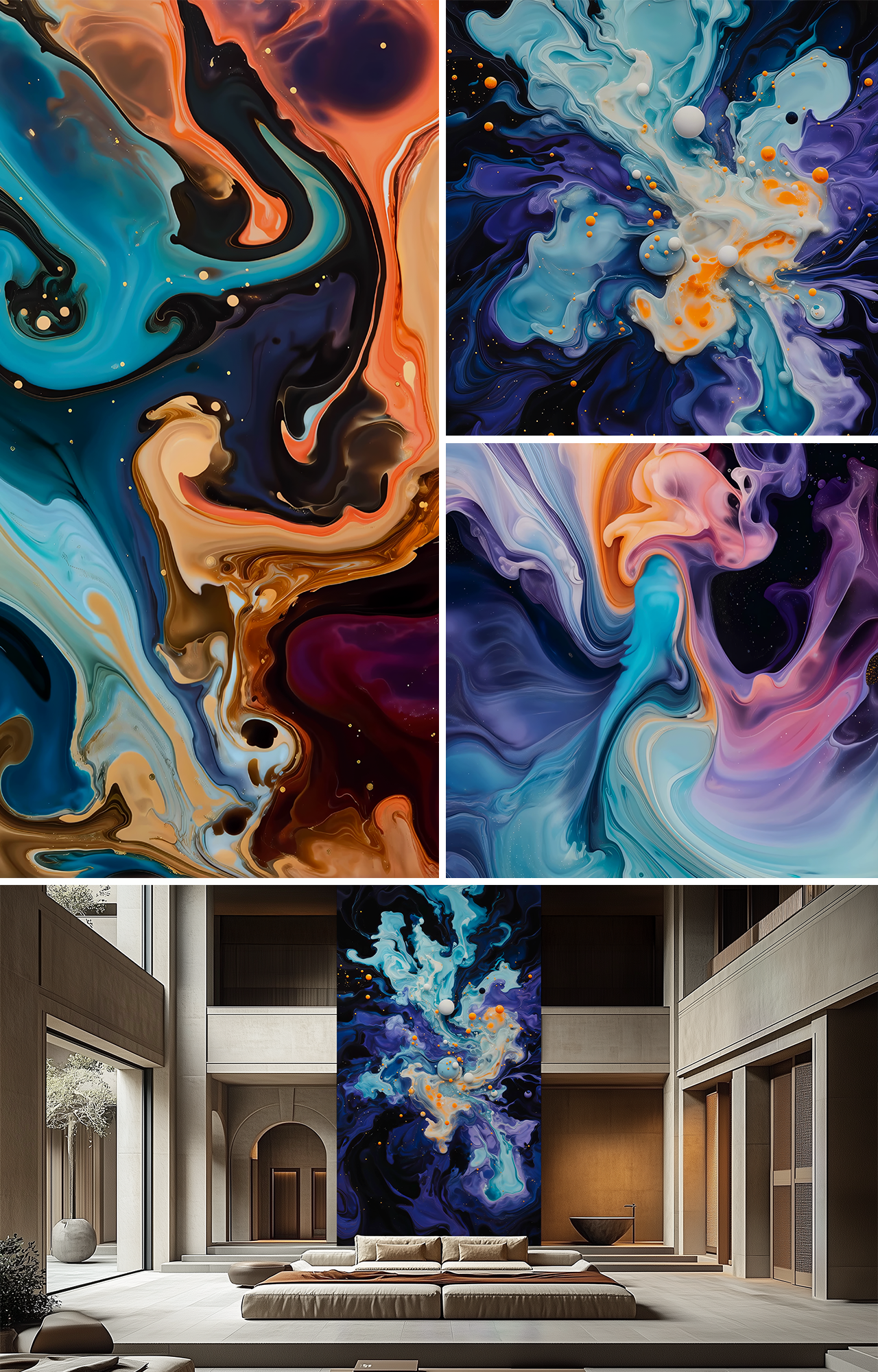 This LED Art exclusive abstract video series transforms organic liquid ink paintings into colorful, fluid motion through photography and generative experimentation. Swirling galaxies of deep purples, rich blues, glowing golds, and many more vibrant hues collide like liquid nebulae, revealing drifting stardust textures. Each piece becomes a living choreography of light and movement, celebrating emotion, depth, and the poetry of fluid transformation.
